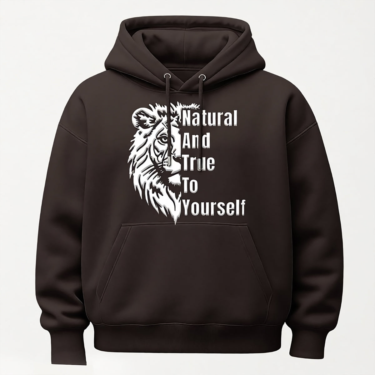 LLUS Hoodie 8.5 oz./yd², 80/20 ring-spun USA premium cotton/polyester with lion design with our anthem,"Natural And True To Yourself"