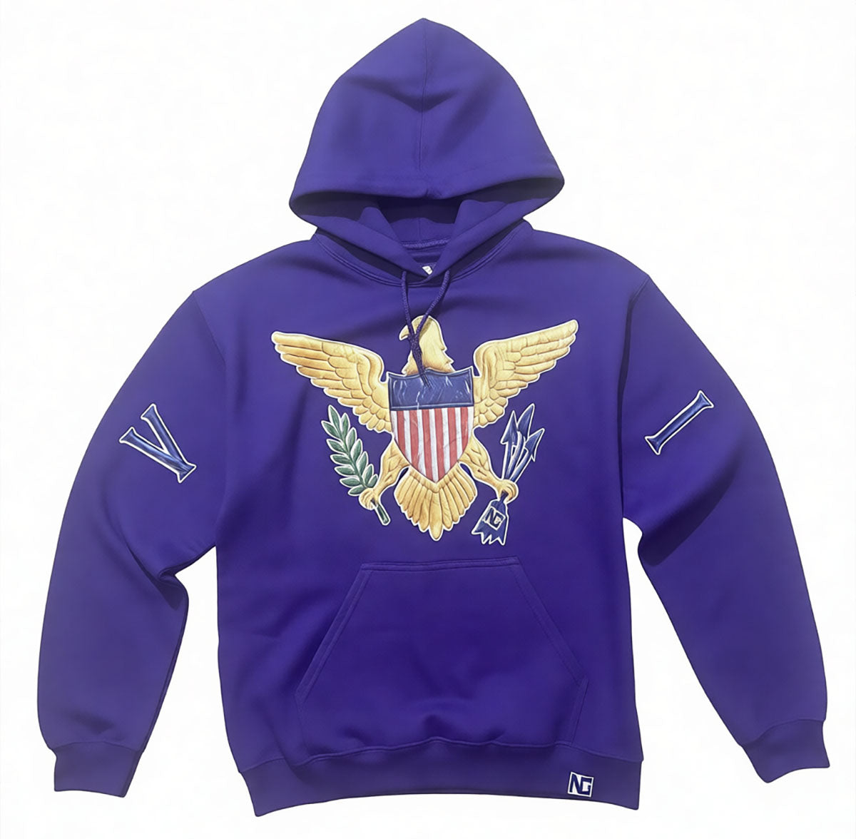 Original VI Hoodie - Purple Unisex. Comfortable, trendy design featuring a 50/50 cotton/polyester Heavy Blend with a Pouch Pocket.