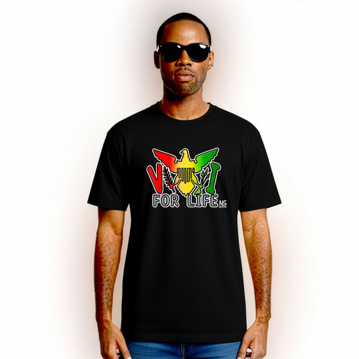 VI for Life Red, Gold and Green This is the shirt you wear when you want to let them know without a doubt that you represent the Virgin Islands. It also lets them know you are true to yourself and you are proud.